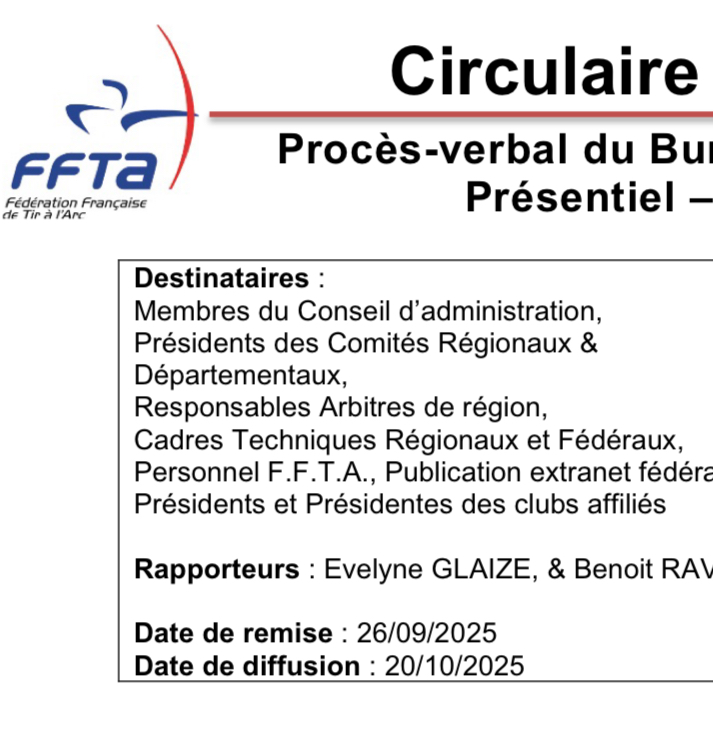 La circulaire d’information de la Fédération française de tir à l’arc est parue le 20 octobre. Vous la retrouvez en ligne sur le site de la fédération.